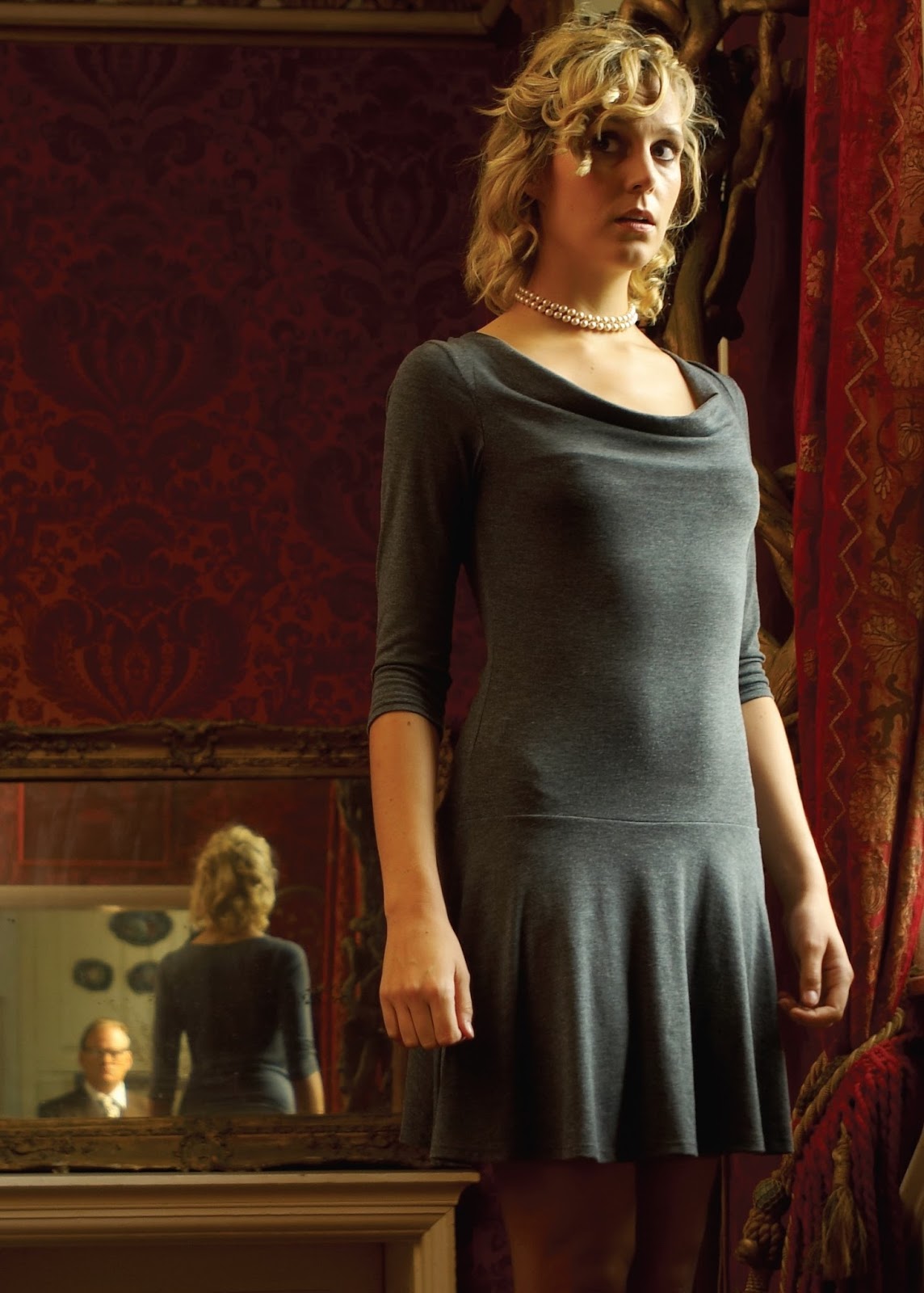 ‘A lovely shade of crimson,’ he tells her. ‘It needs to be set off by some burnished magenta. Take up the position on the chest over there.’