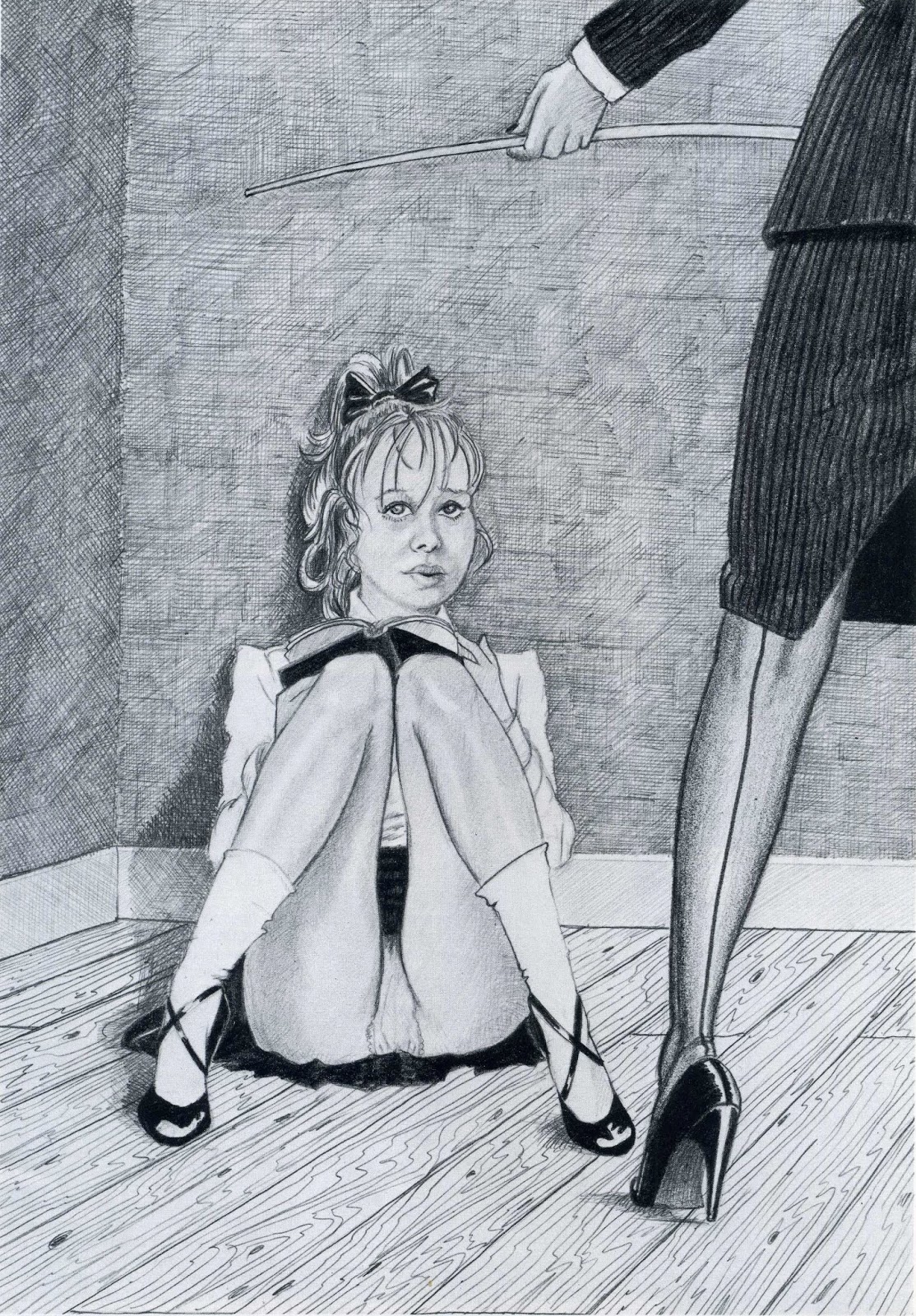 The din was brought to an abrupt halt upon the reappearance of Miss Glover. ‘What is this?’ she stormed, and then glanced over at young Stephanie. ‘I see… Well,’ she said, turning to face the class, ‘you will all write four sides on the works of one of the Russian writers… While you,’ swivelling round to face the girl in the corner, ‘will, as the cause for this turmoil, have a little something which should cause you to think twice before sitting down again for some time to come.’