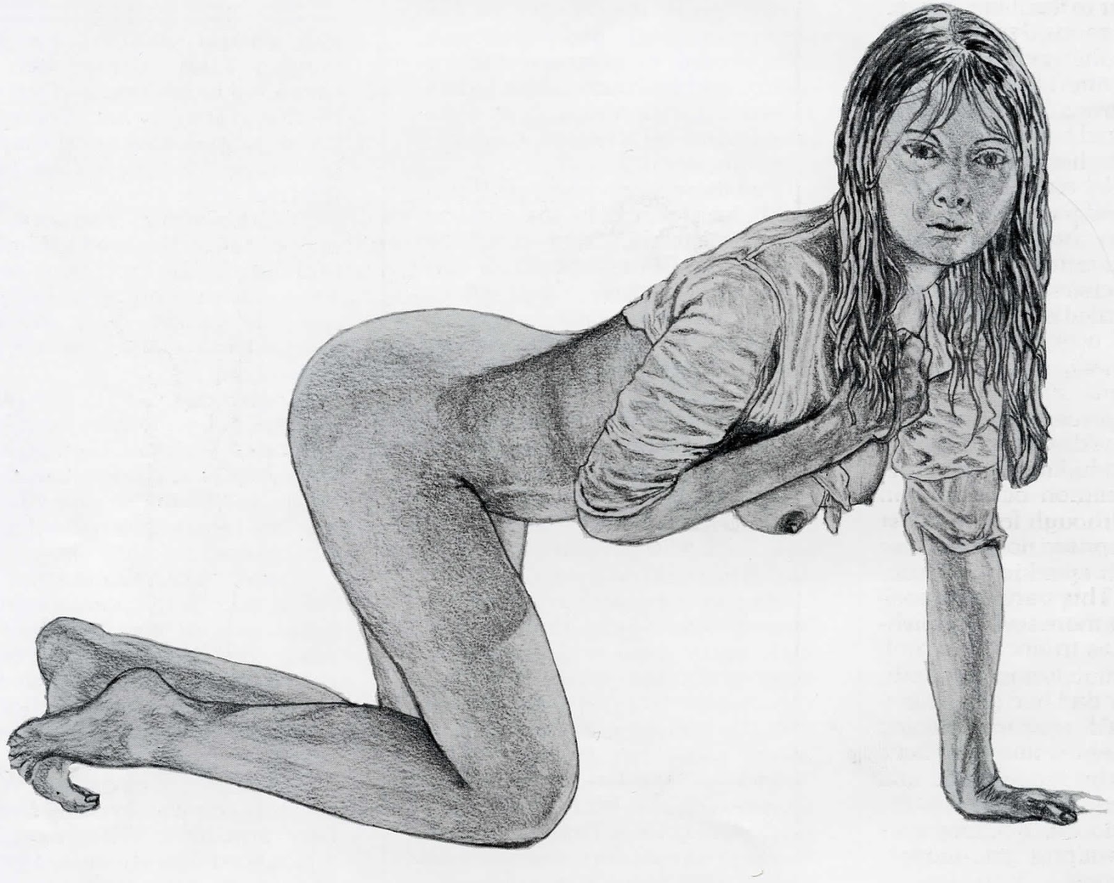 Sonia fell from her perch and knelt on the carpet, sobbing and contorting her face. Her legs, too, twisted first this way then that, as she tried to rid herself of the sting in her bottom. These movements made her little breasts wobble, her bottom-cheeks part, and put on display other — more private — areas. Uncle Jack was, however, too much of a gentleman to notice any of this. He was taking a large draught of what little gin the girl had left him.