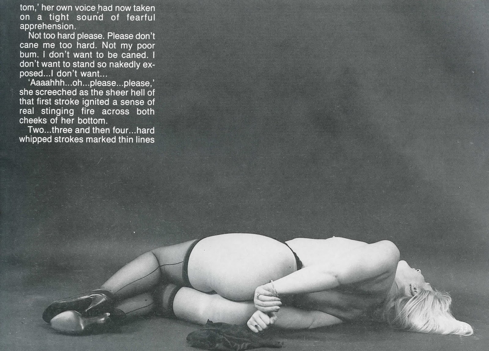 The rounded moons of her bottom, now revealing the sheer state of his thrashing cane, stretched with the enforced pose of her wrists pulled between her thighs and then all the way through to join her ankles. He warned her that if she moved he would thrash her without stopping with a harsher twin leathered strap. She tried to smother the gasp that wanted to escape her when his hands traced the lines of the cane that he had put across her.