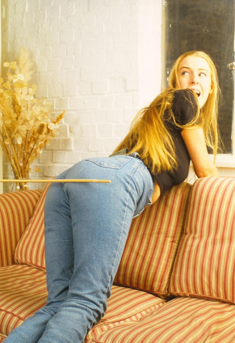 Still trying to think of a way to get out of the dilemma, Jess stretched across the seat of the sofa and rested her arms on its back. Her jeans hugged her rounded backside and beneath her brief top her breasts hung heavily. She had no idea how it would feel but was reasonably confident that the combination of the thick denim covering her rump and the physical constraints imposed by her landlady’s high-heels and close-fitting business suit would prevent it from being too severe.