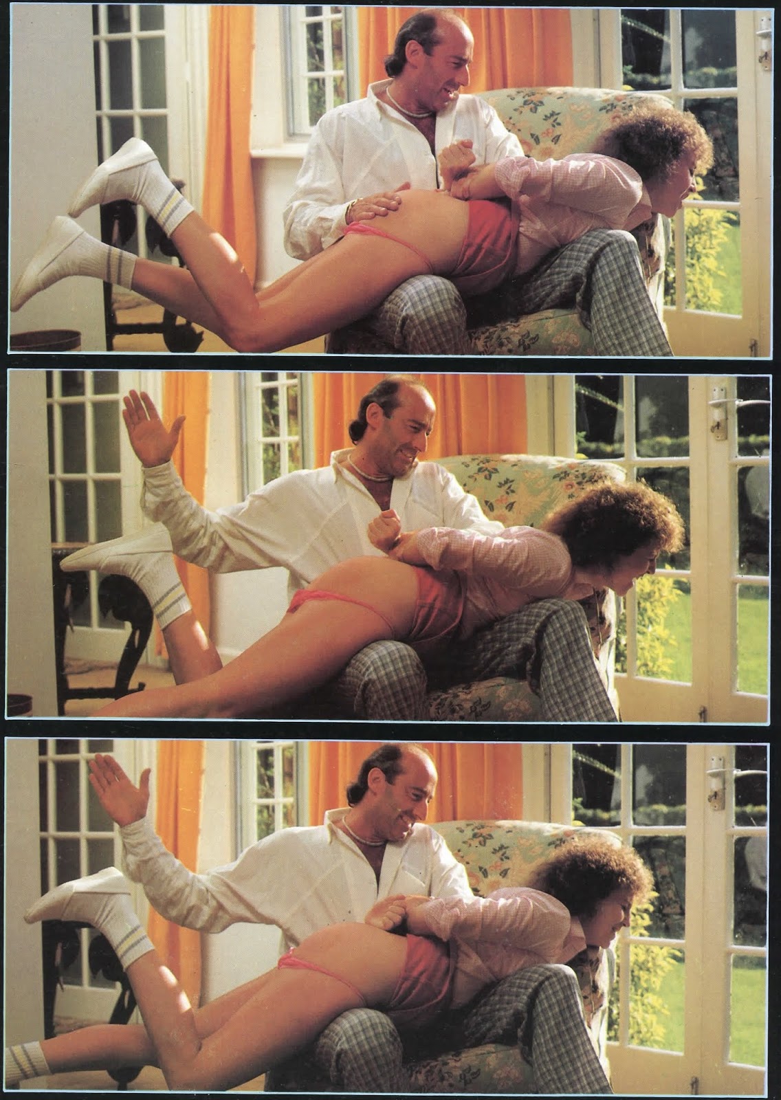 them down. So that Amanda’s bottom is bare again. She is gasping, moaning, at